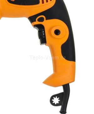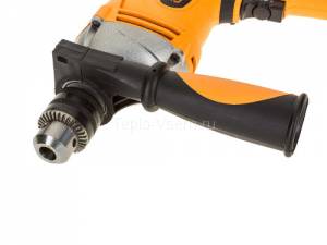 - Рукоятка имеет мягкую накладку и упор в нижней части для надежного захвата дрели во время работы.